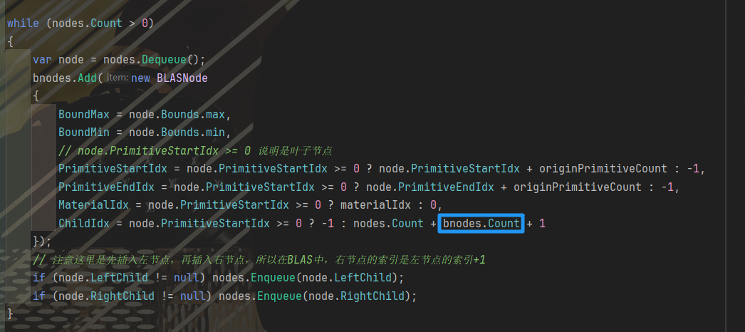 这里的bnodes.Count,我在重构的时候把它独立成一个变量,写在了while外面,但注意while内部的操作是 bnodes.Add,也就是说每次循环都会导致bnodes.Count的变化,而我却只是在外面记录了他的初始值。所以以后Copy重构其他人的代码的时候,要注意这些小细节