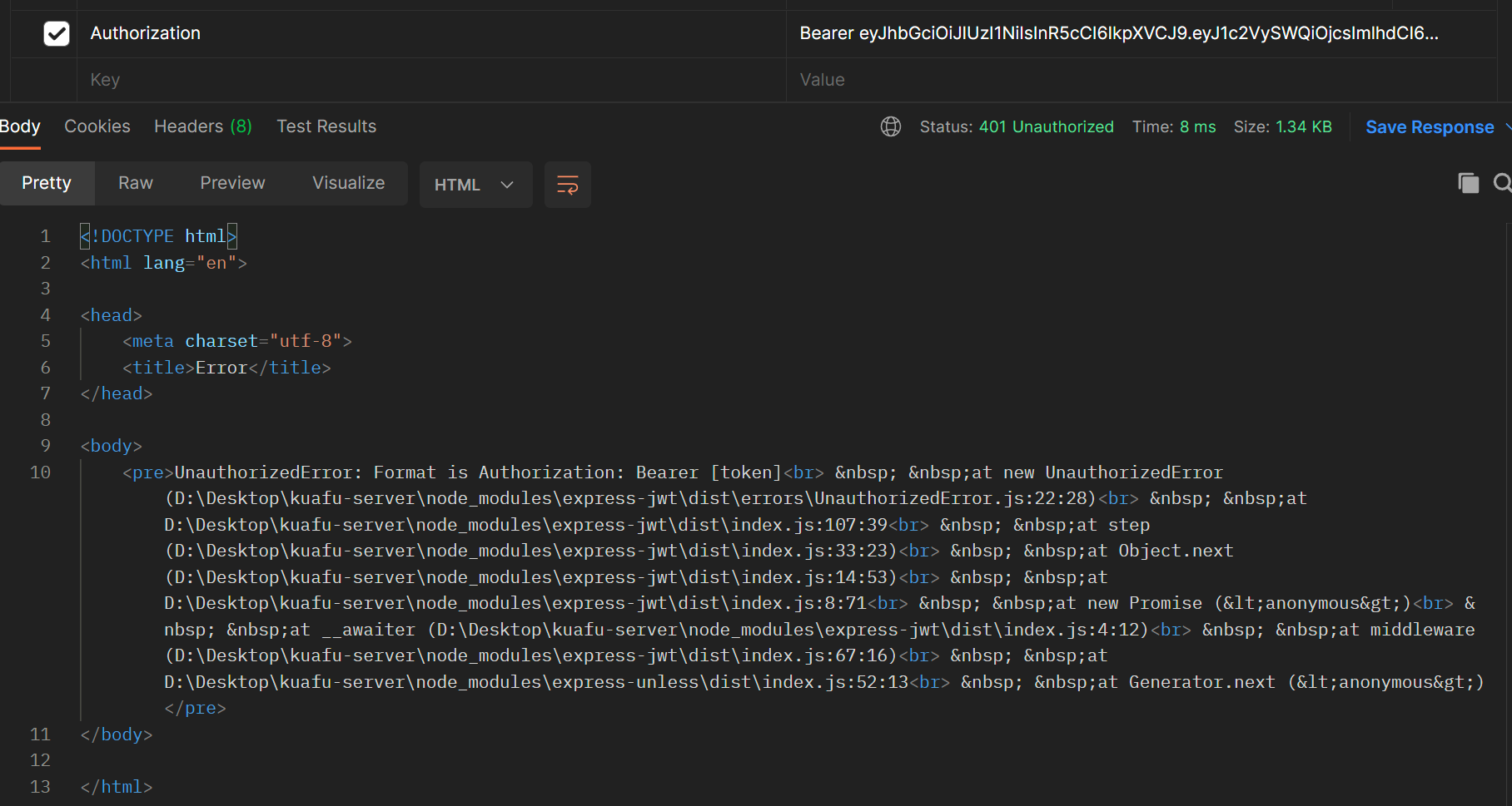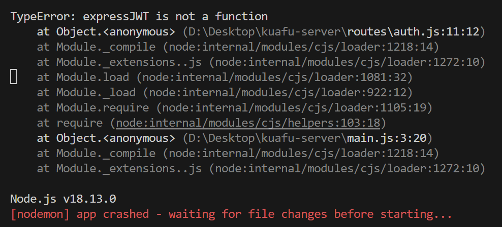 又进行一番研究之后,改为使用 express-jwt 库,兴致冲冲地去运行服务时却告诉我