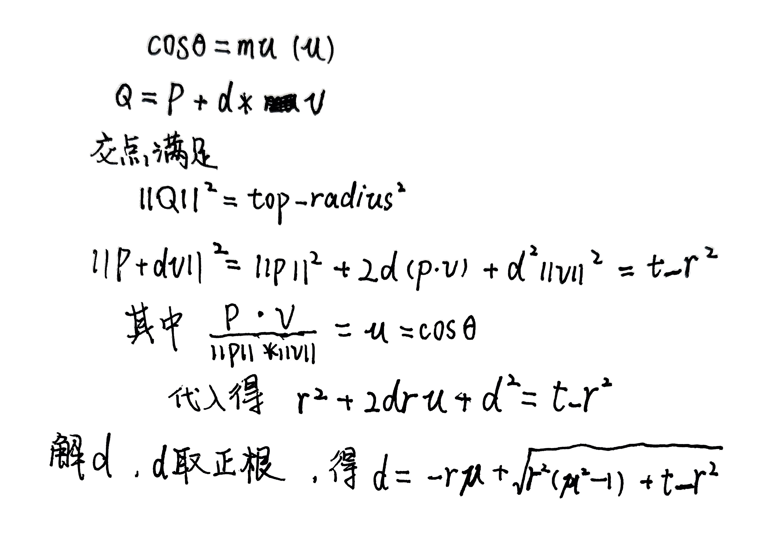 Area discriminant = r * r * (mu * mu - 1.0) + top_radius * top_radius;