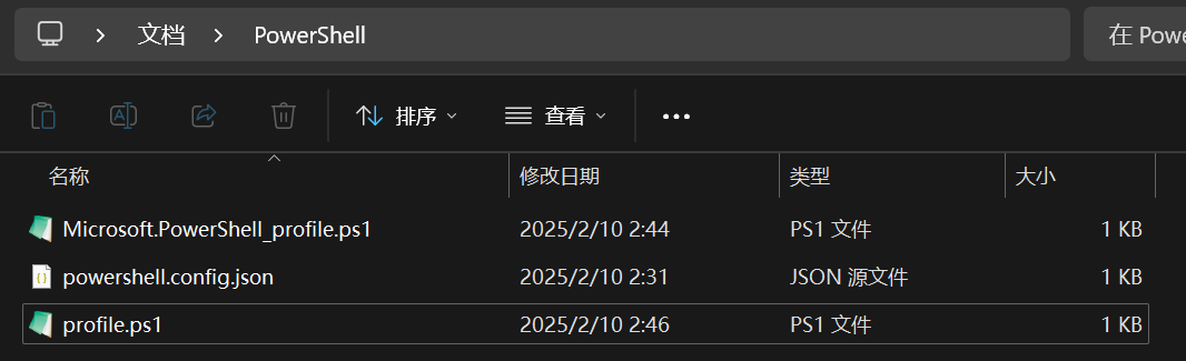 我目前的环境:Powershell 7.5.0,装了 Oh my posh,在C:\Users\YourName\Documents\PowerShell,下已经有Microsoft.PowerShell_profile.ps1,这是之前为了配置 Oh my posh 创建的。