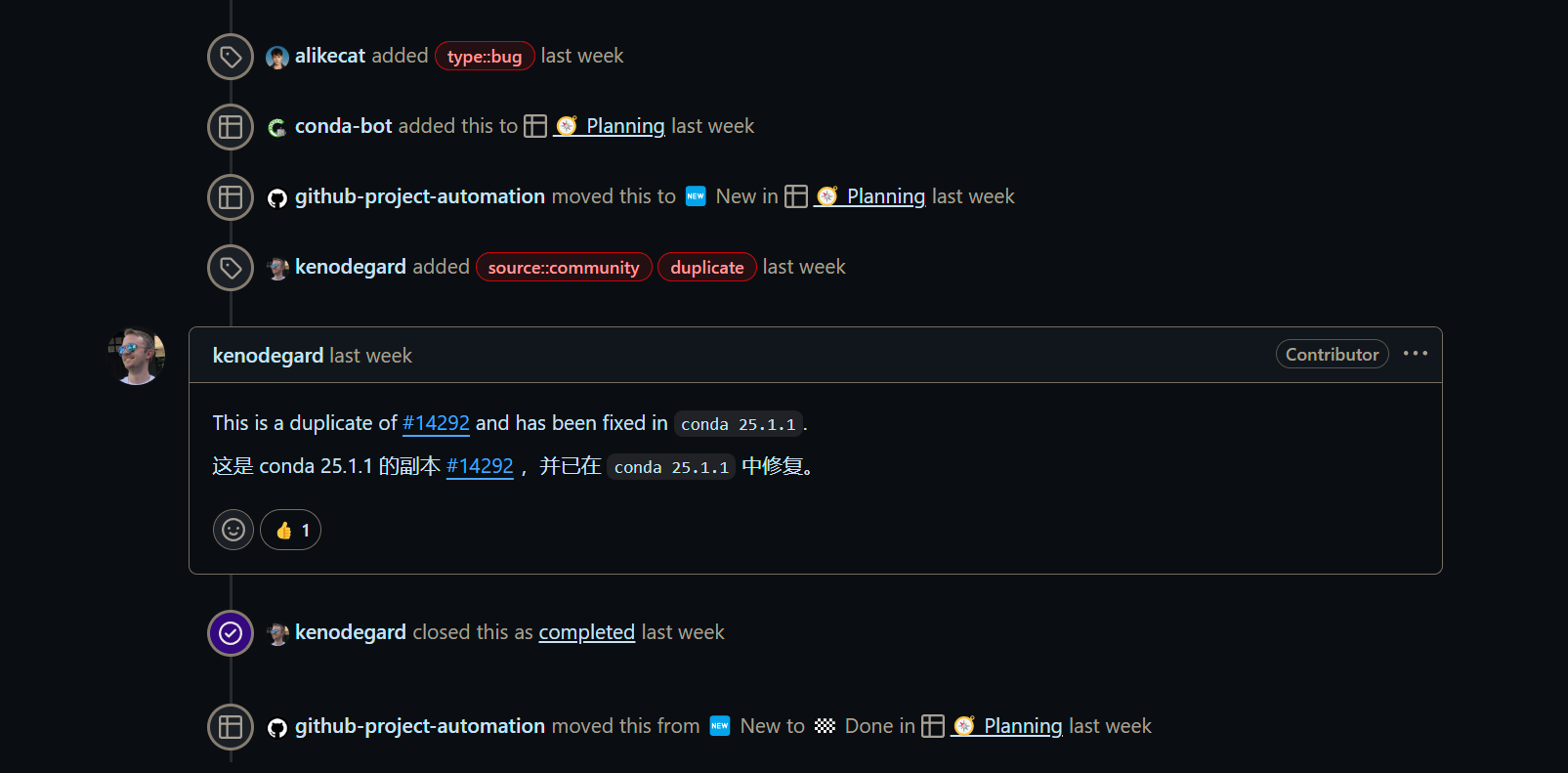 还有另外几个issue:https://github.com/conda/conda/issues/14292 、https://github.com/conda/conda/pull/14517