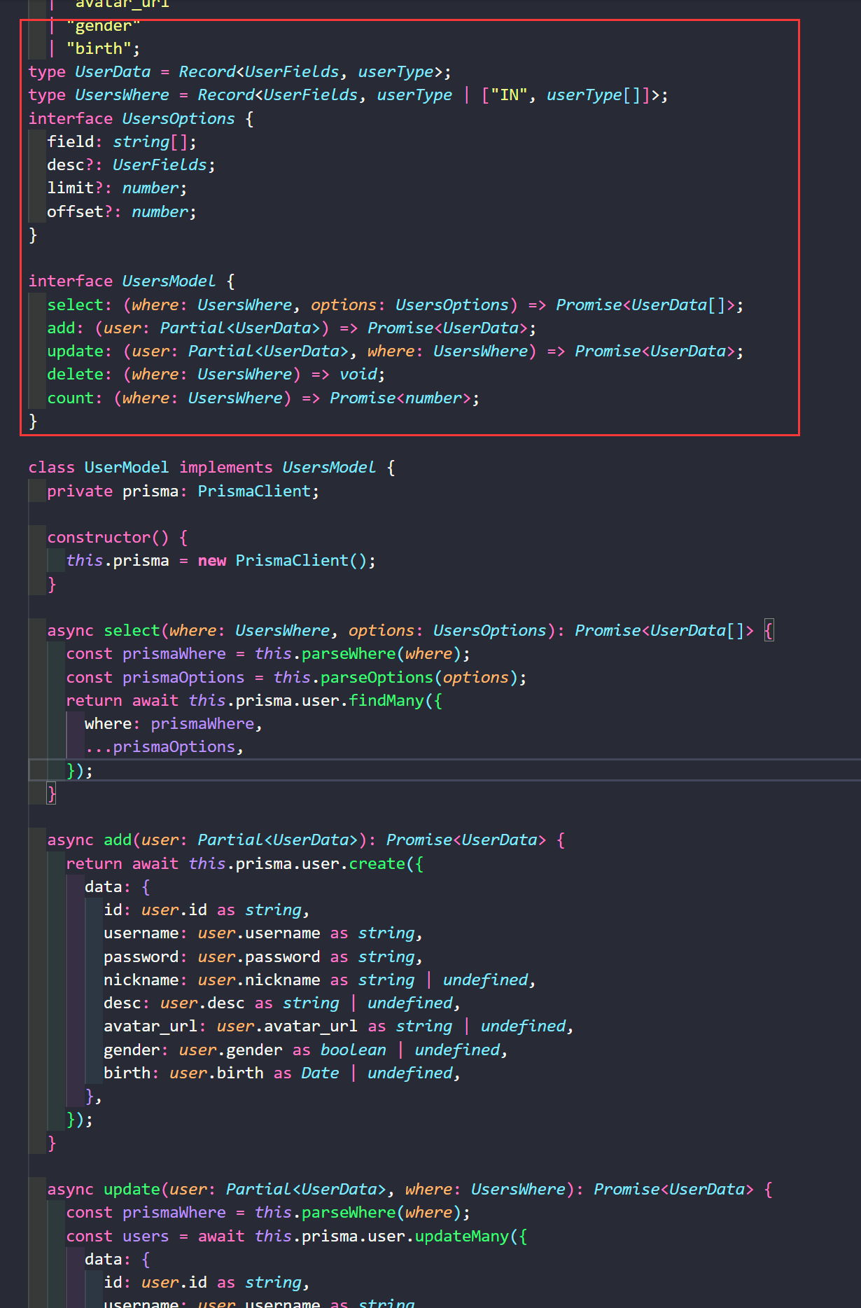 prisma migrate,还要和我们的主项目同步 Prisma Schema 。这才会生成对应的 PrismaClient 。然后我就可以写出类似如下的代码: