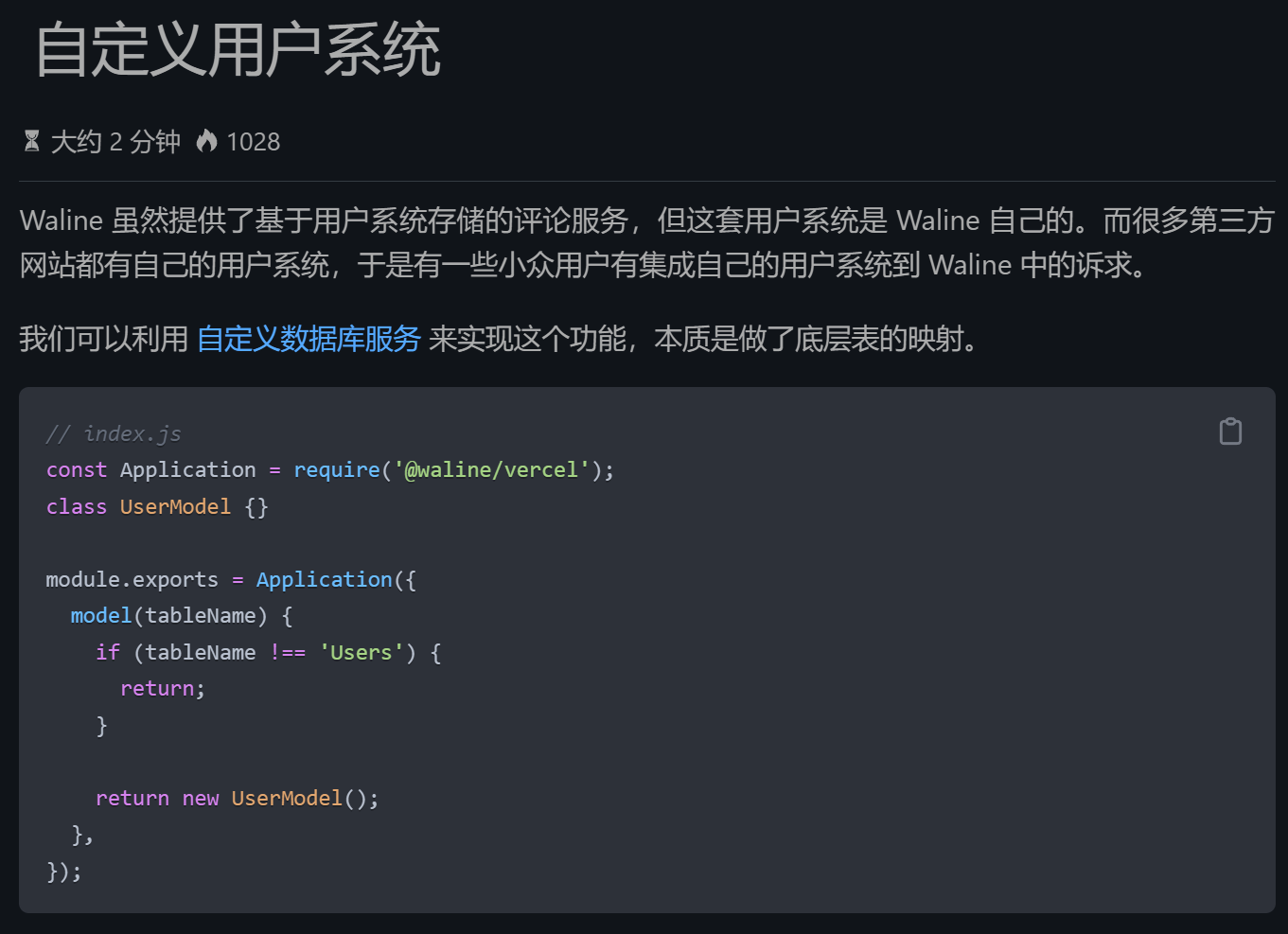 如上面的自定义用户系统,它说可以用“自定义数据库服务”来实现这个功能,于是去查看自定义数据库文档